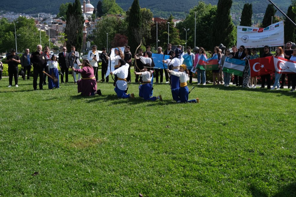 Etlinlik Okçuluarın anma atışıyla başladıktan sonra etkinlik alanı olan 1326 Fetih Müzesine yürüyüşe geçildi. Türkçe üzerine özlü sözlerin yazılı olduğu asılar ve Türk Devletleri Bayraklatı eşliğinde alana girildi.